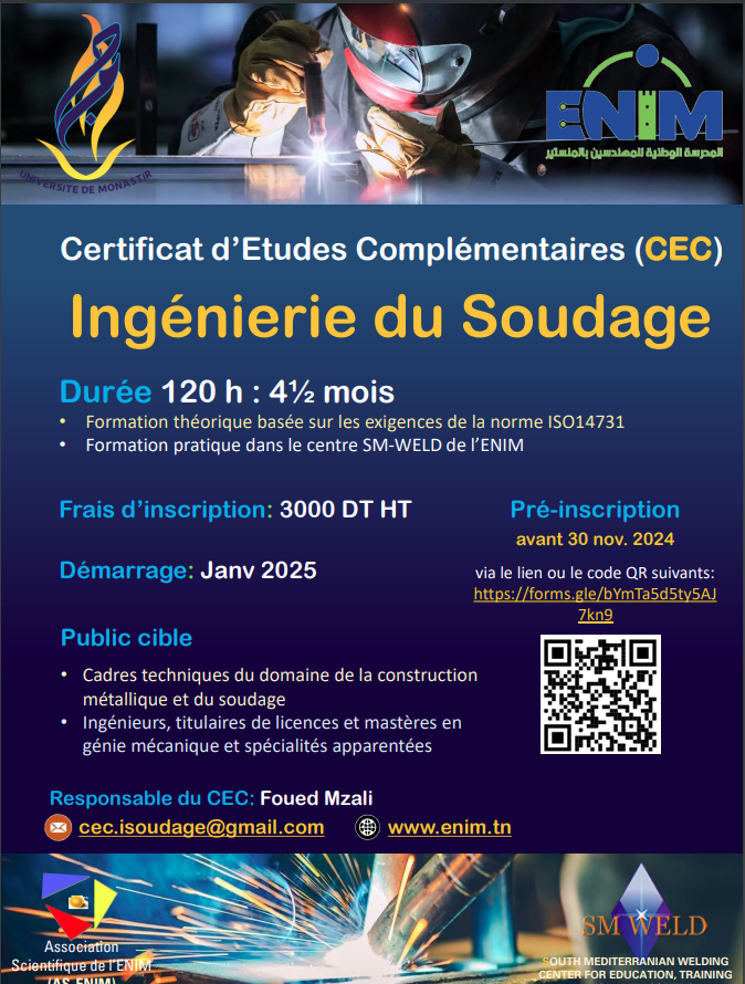 Certificat D’études complémentaires (CEC) en Ingénierie du Soudage
