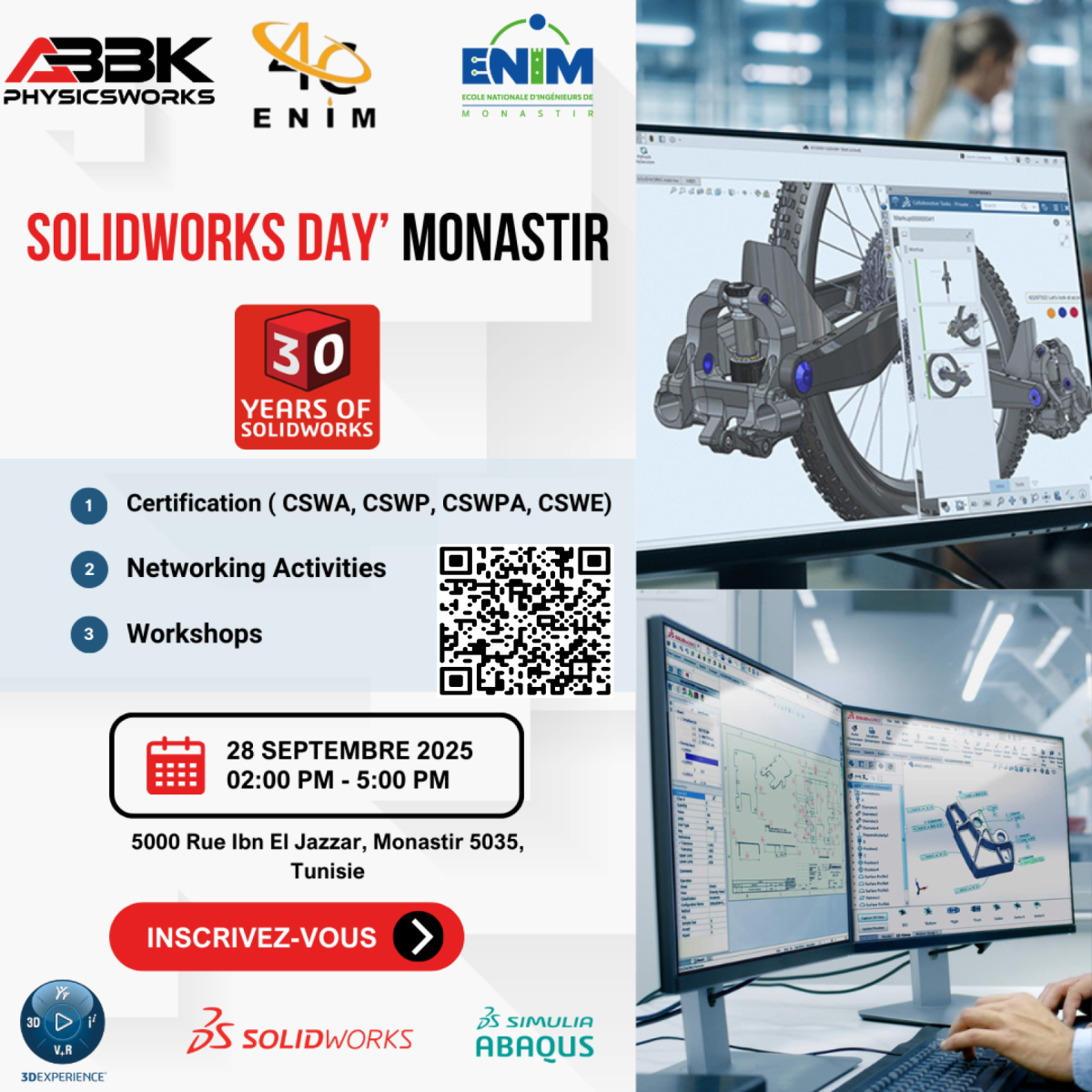 l’événement SolidWorks Days, se tiendra à l’ENIM le dimanche 28 septembre 2025 à partir de 14h.