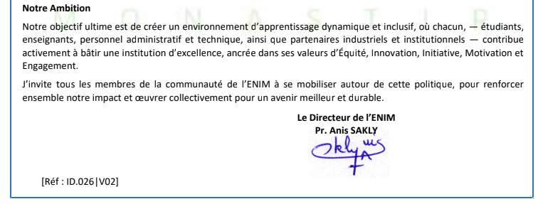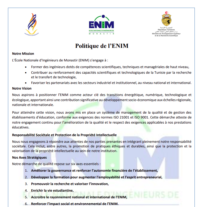 Politique d’assurance qualité de l’École Nationale d’Ingénieurs de Monastir (ENIM)